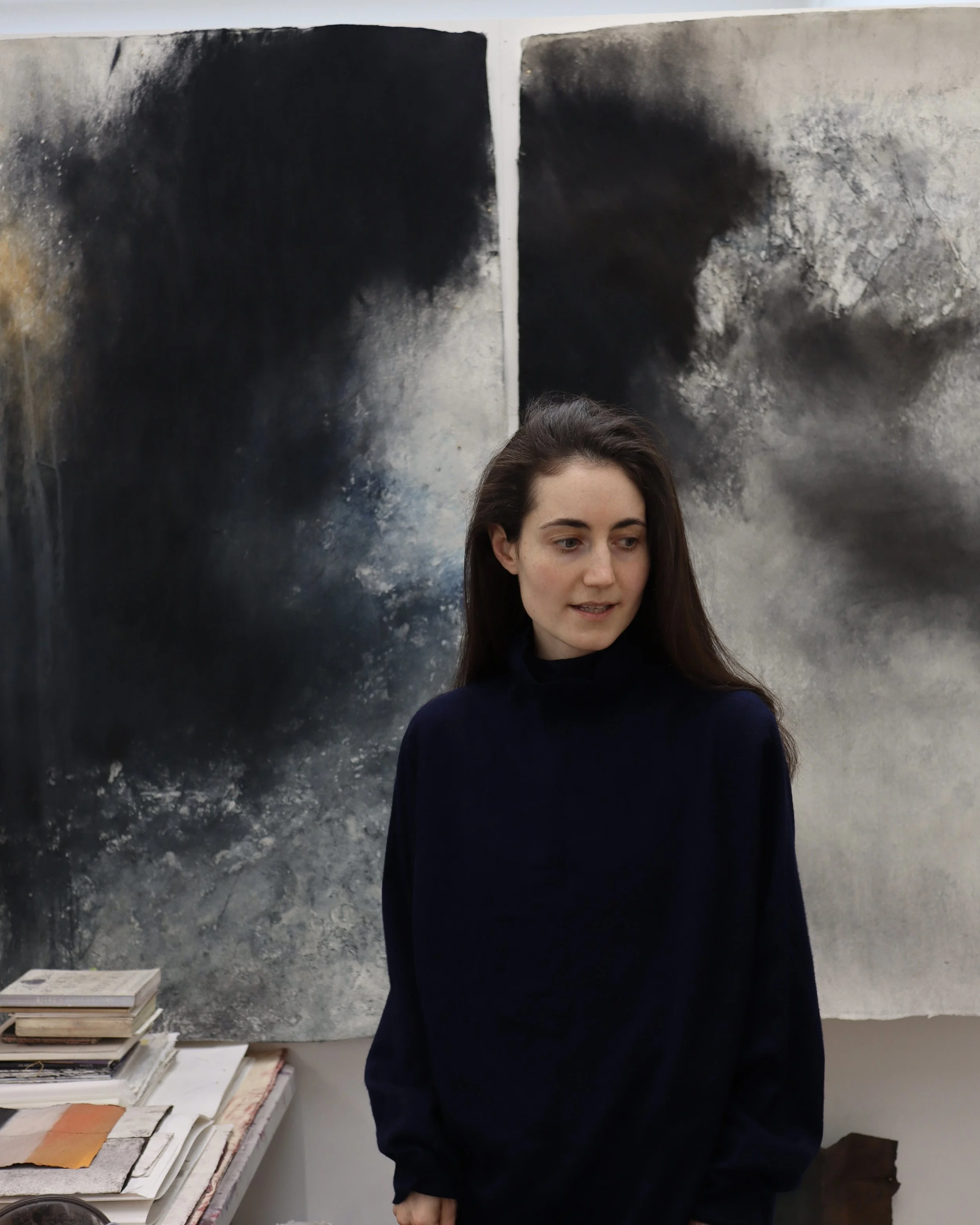 Lavinia is moved by how soft, vulnerable materials can hold and emanate deeply charged emotions. Through making, she is searching for ways to materialise sensation. The works that grow from this are not representations but embodiments. For this reason, questions of care and empathy are at the heart of her practice. Lavinia works directly with her hands, embedding pastel into paper, which she folds, unfurls, soaks and rubs until the tactile sensibilities of surface and structure resonate with the experiences she is exploring. Her works emerge from an accumulation of action and erasure, contemplation and somatic movement, and are guided by visceral reactions to colour.